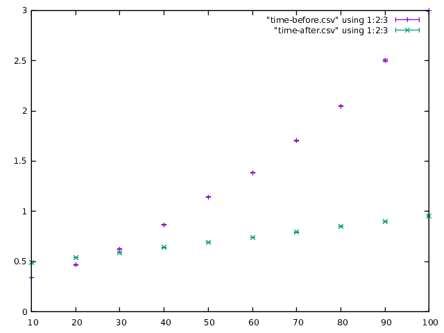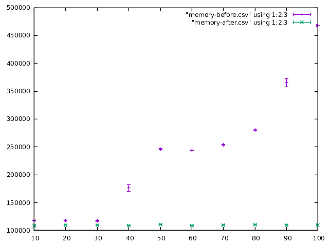 In terms of “real” performance measurements, here is a plot of ghc memory
